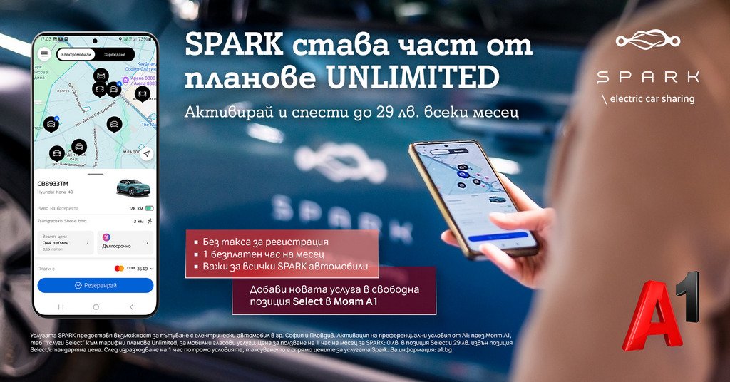 През декември А1 разширява портфолиото си от услуги Select, като добавя платформата за споделена мобилност SPARK. Потребителите, които имат сключен абонамент за мобилна гласова услуга през 2024 г., могат да активират SPARK като част от свободните си промопозиции Select. Така абонатите на телекома ще имат възможността да се възползват от преференциални условия – 1 безплатен час на месец, без такса за регистрация и без значение от типа на използвания автомобил или изминатите километри.