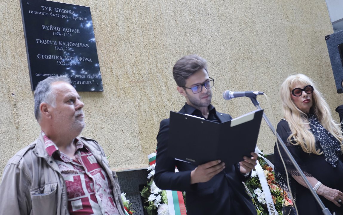 Обща паметна плоча на Стоянка Мутафова, Нейчо Попов и Георги Калоянчев беше открита тази вечер на софийската улица "Люботрън" 96, където те са живели до последните си дни, съобщава БГНЕС.