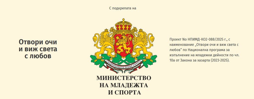 В рамките на проект НПИМД-КО2-088/2025 г., с наименование „Отвори очи и виж света с любов“ по Национална програма за изпълнение на младежки дейности по чл. 10а от Закона за хазарта (2023-2025), изпълняван от Сдружение „Инициатива за чиста среда“ ще се проведе двудневен онлайн хакатон „Толерантна България“.