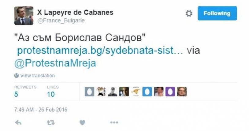 Припомняме, че преди дни Сандов бе осъден на първа инстанция заради публикуван статус в профила си в социалната мрежа "Фейсбук".