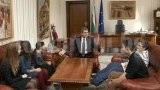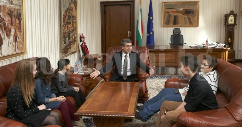 Държавният глава прие поканата за откровен разговор на най-младите журналисти на обществената телевизия - Неда Николова (10 години), Ина Ангелова (12 години), Неда Коцева (14 години), Кристиан Павлов (12 години) и Кристиян Славчев (14 години).