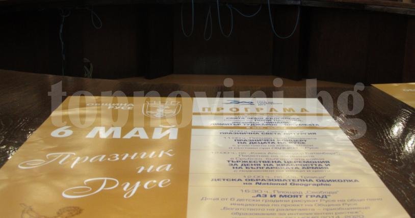 От 16:30 ч. на площад „Свобода“ „Аз и моят град“ ще представят деца от 6 детски градини рисуват Русе на общо пано – инициатива по проект на Община Русе. В 17 ч. пред Доходно здание ще има празничен концерт на Биг Бенд – Русе с диригент Димчо Рубчев.