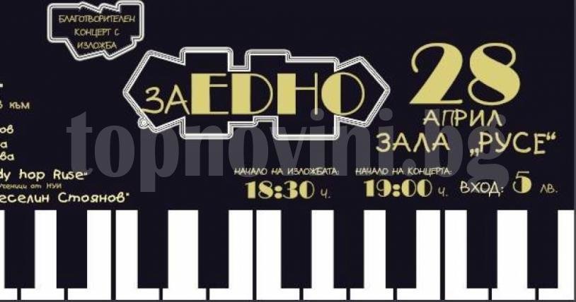 Днес, 28 април, в зала „Русе“ ще се проведе благотворителна изложба и концерт в подкрепа на каузата „Талант без граници“, съобщават от пресцентъра на общината. Изпълнители от различни възрастови групи и различни стилове, ще си подадат ръка и чрез участието си ще заявят своята силна подкрепа за това да продължи ремонта и обновлението на музикалните инструменти в НУИ „Проф. Веселин Стоянов“ - Русе.