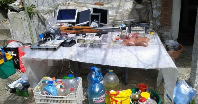 „В същия дом, който не е негов, а е на близък, който е починал, са намерени изключително много наркотични вещества, прекурсори, електронни везни, термометри, колби, както и огнестрелни оръжия (незаконна ловна пушка, пистолет с преправена цев, въздушна пушка – също с преработена цев), боеприпаси и крадени вещи, част от които е установено, че са задигнати в Бургас. Това са велосипеди, лаптопи, телефони, монитори и други. Извършва се разследване по делото за установяване съпричастността на това лице към тези инкриминирани вещи“ – заяви прокурор Петров.