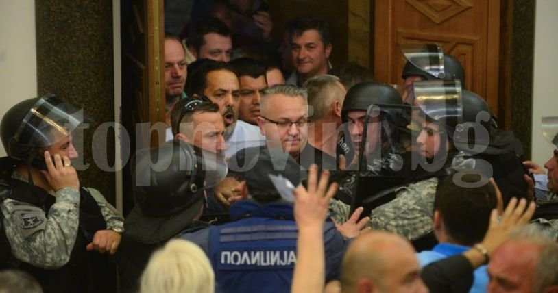 Част от охраната на депутатите социалдемократи насочиха огнестрелно оръжие срещу хора, влязли в парламента, разгневени от незаконното избиране на Талат Джафери за председател на Собранието, предаде БГНЕС. Медиите публикуваха и снимки на въоръжени лица в сградата на парламента.
