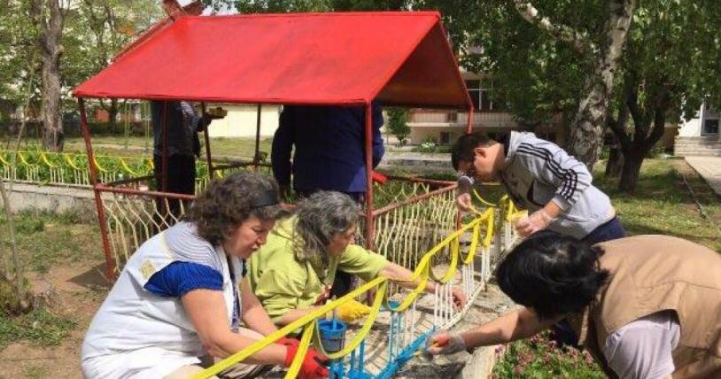 Въпреки почивният ден всички работеха задружно, за да придобие двора един нов и по – ведър облик.