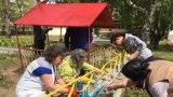 Родителите на малчуганите и ръководството от ДГ „Златна рибка“ се събраха в двора на детското заведение, за да предадат нов живот и да украсят в различни цветове старите съоръжения за игра.
