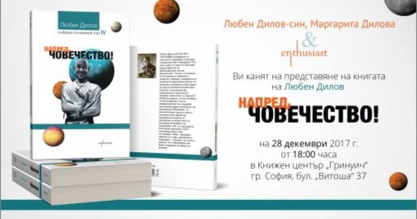 Любен Дилов-син, Маргарита Дилова и издателство „Ентусиаст" ще представят на книгата на Любен Дилов „Напред, човечество!".