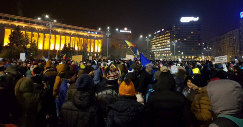 По данни на медиите, близо 4000 души са участвали в тричасовия митинг на Площада на победата в Букурещ, въпреки студа и силния снеговалеж. На това място през последната година се организираха много демонстрации в защита на независимостта на съдебната система и правовата държава.