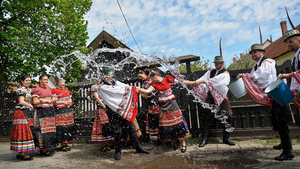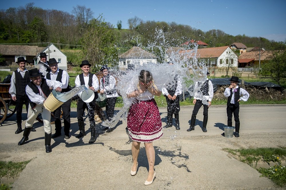 „Пръскането”, популярна унгарска традиция, се отбелязва в понеделник на Великден. Момчетата пръскат парфюм или ароматизирана вода по момичетата и искат целувка. Вярва се, че водата има почистващ и лечебен ефект и дарява с плодовитост.