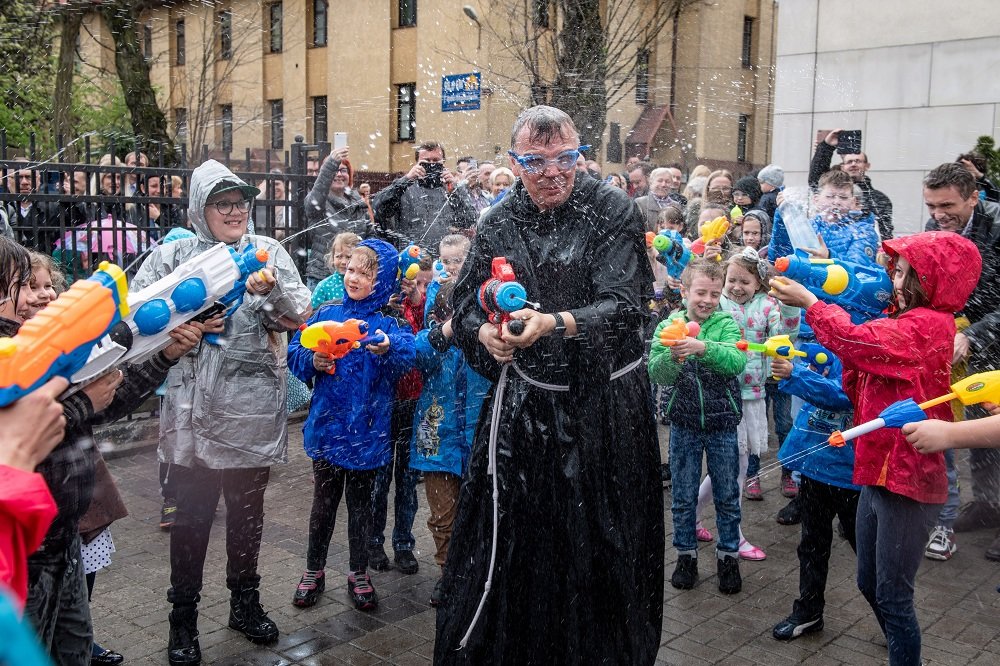 Вливането на вода от един съд в друг е полска традиция, наречена Śmigus-dyngus. В понеделник на Великден момчетата излизат с кофа вода, а легендата разказва, че намокрилите се момичета ще се оженят до края на годината. Традицията произхожда от кръщението на полския принц Миеско в понеделник на Великден през 966 г. сл. Хр.