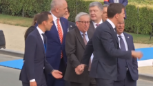 Уморителната среща на върха на НАТО очевидно се е отразила особено тежко на председателя на Еврокомисията Жан-Клод Юнкер. Той привлече вниманието със загуба на равновесие и затруднена подвижност преди снощната празнична вечеря.