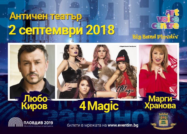 Art Voice Centrе и 4 Magic организират концерт под надслов ЗАЕДНО на 2 септември от 20:00 ч. на Античния театър в Пловдив. С децата ще пеят и Маргарита Хранова, Любо Киров и музикантите от Биг Бенд Пловдив.
