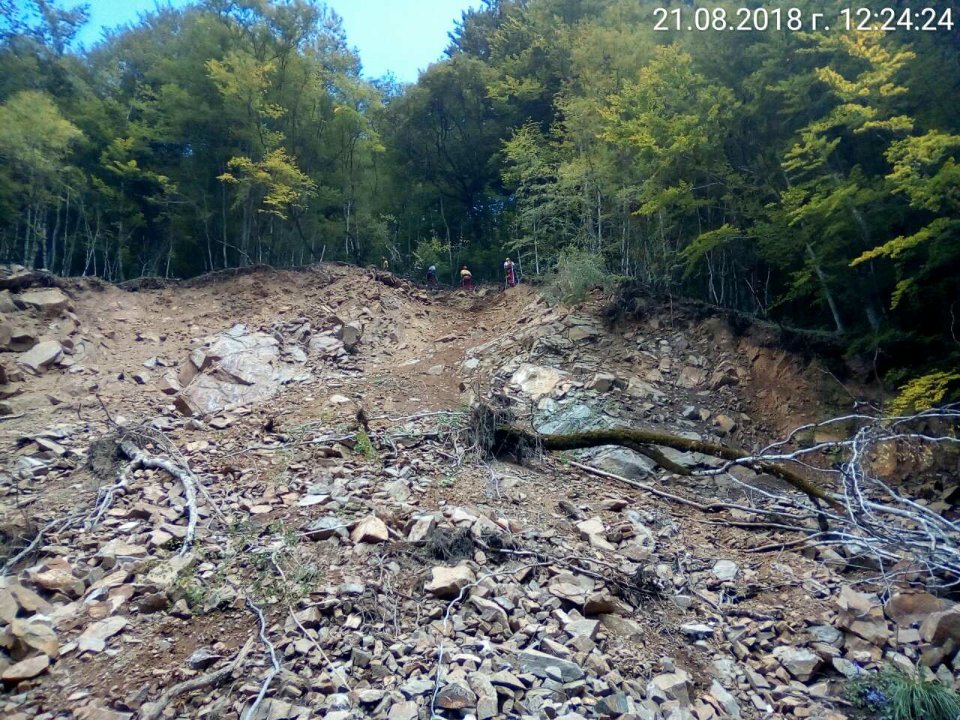 За разчистване на пътното платно от падналите скални късове и дървета автомобилният трафик се спира за определени интервали, за да се осигури безопасното извършване на работите.