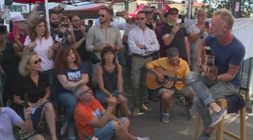Стинг пя на английски и италиански с работници от Флоренция. Така големият музикант изрази съчувствие към съдбата на близо 400 души, чиято фабрика е пред закриване.