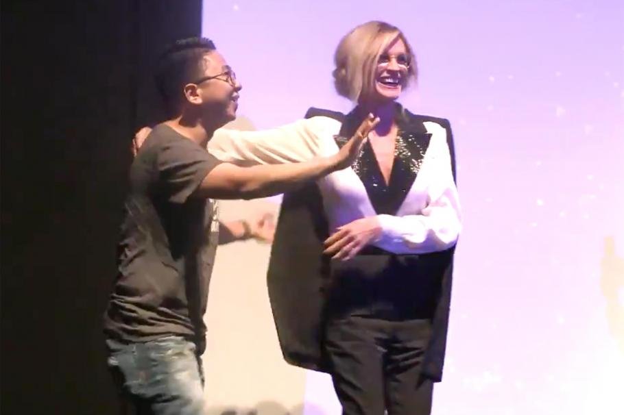 Жестът трогна звездата от „Хубава жена“ и тя покани мъжът да се качи при нея на сцената. „Знаеш ли какво? Тук няма стълби, така че аз ще дойда при теб“, оповести тя секунди преди да се озове в редиците на публиката и да дари Сантана с прегръдка. „Чакам този момент от 28 години. Мечтите се сбъдват“, изрази радостта си фенът пред Global News. „Влюбена съм в теб! Ти си страхотен човек“, изповяда се и 50-годишната Робъртс пред публика и медии в Торонто, след което помоли фотографите на терен да запечатат кадър на нея и Сантана.