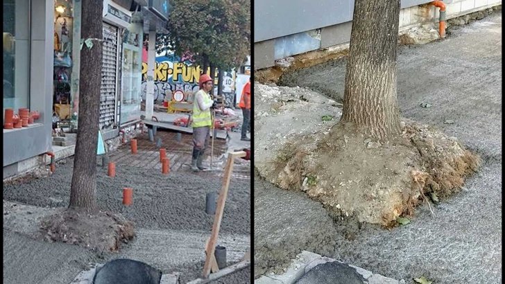 Снимки, показващи бетонирането на дървета по ул. "Граф Игнатиев", разпространиха от гражданската организация "Спаси София".