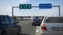 Тежкотоварният автомобил е аварирал в активната и изпреварващата лента на магистралата и движението се извършва само в аварийната.