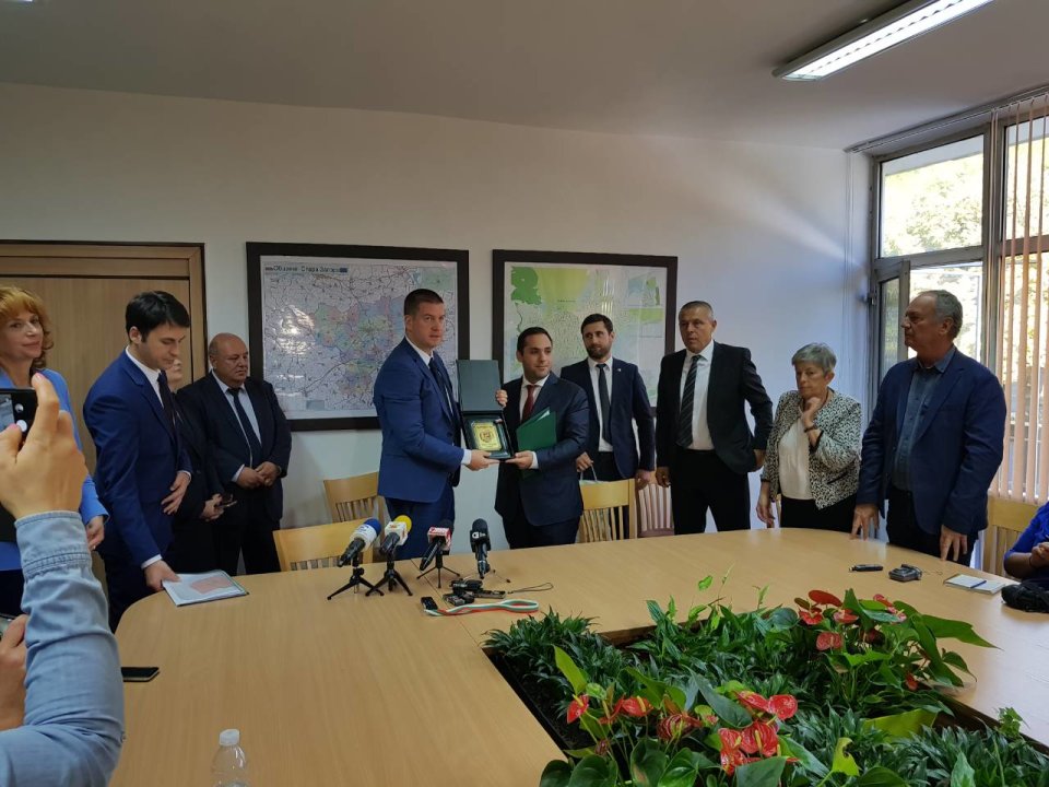 Кметът на Стара Загора Живко Тодоров благодари на министър Караниколов за осигуряване на средствата за развитието на Зоната в града и му връчи благодарствено писмо и плакет.