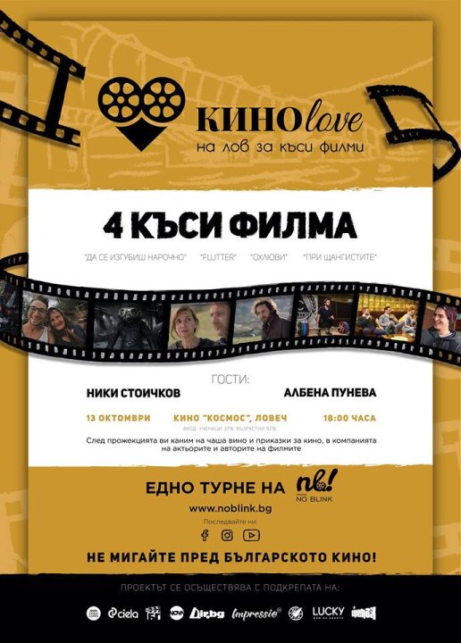 Късометражното кино гостува в Ловеч с  проявата КИНОlove 2018 –Ловеч. На 13 октомври, събота, от 18 часа в кино „Космос“ – Ловеч, ще се прожектират 4 къси филма, а именно: