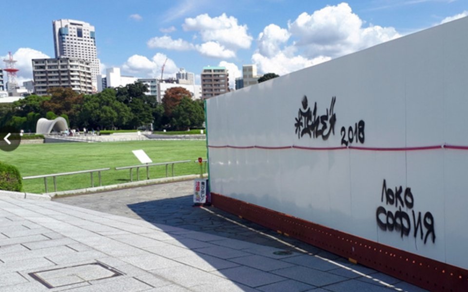 Мемориалният комплекс на мира в японския град Хирошима, посветен на жертвите от атомната бомба, хвърлена над града на 6 август 1945г. се появи, надраскан с черен спрей надписа на български език „Локо София”.