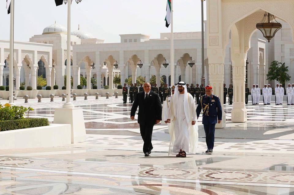 От все сърце бих желал връзките между нашите две страни да се развиват и укрепват, заяви от своя страна шейх Мохамед бин Зайед Ал-Нахаян. Престолонаследникът на Абу Даби прояви интерес към Българското председателство на Съвета на Европейския съюз. Премиерът Борисов акцентира върху решението на страната ни да включи като акцент в европейския дневен ред темата за Западните Балкани и перспективата за тяхното развитие. Той запозна своя домакин с ключовите акценти от Софийската декларация, подписана на срещата на върха през май тази година, с която се потвърждава подкрепата на всички държави-членки на ЕС за европейската перспектива на Западните Балкани. Българският министър-председател обърна внимание на това колко етнически шарени са Балканите и изтъкна, че страната ни е пример за етническа толерантност.