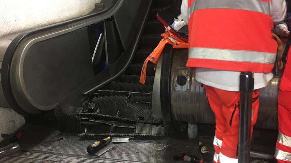 Голяма група футболни фенове пострадаха след повреда на ескалатор. Съоръжението изведнъж започнало да се движи много бързо и се счупило в долния си край, притискайки хората.