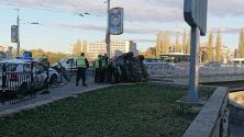 Автомобил се обърна по таван до статуята на моста на Водната палата в Пловдив.