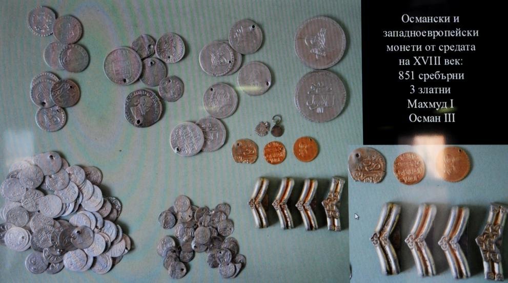 Находката е била заровена в платнена торбичка и по монетите е имало отпечатъци от нишките на плата. Открити са още обеци, огърлици, колан и накити за коса.