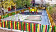 Изцяло обновена детска площадка посреща децата от филиала при ДГ „Роса“ Благоевград. Детският кът е съобразен с всички изисквания за безопасност, като за целта е положена ударопоглъщаща настилка .