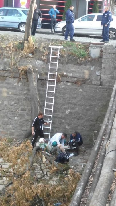 На снимките във „Фейсбук” се вижда възрастен мъж, окървавен, който е паднал от височина около пет метра.