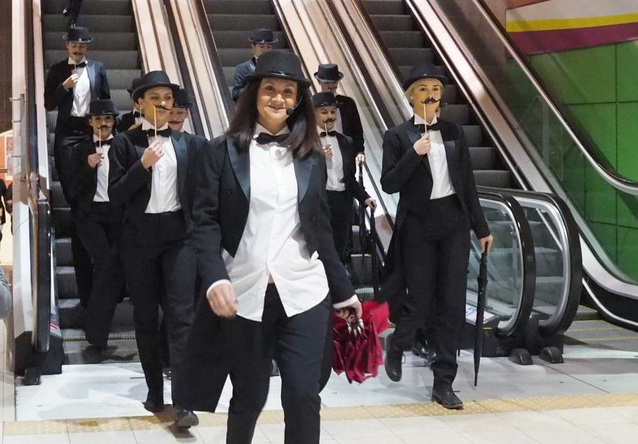 Тя запя на метростанция „Сердика“, облечена в мъжки костюм, на високи токчета и с бомбе на главата.