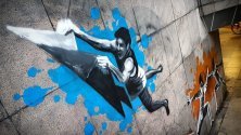 Младите български шампиони грейнаха в стилни рисунки, разкрасили подлеза пред Министерството на младежта и спорта.