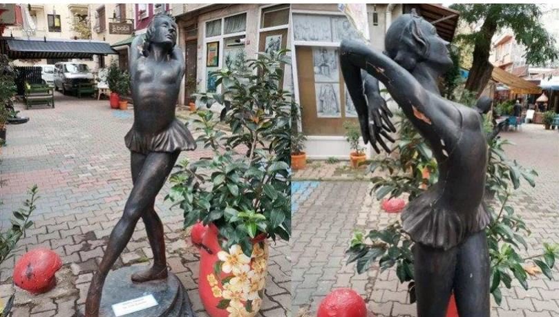 Според ежедневника "Евренел" статуята на турската балерина Мерич Шюмен, която е била изложена като част от изложбата в истанбулския квартал Малтепе, е била нападната от четирима неидентифицирани мъже и две жени.