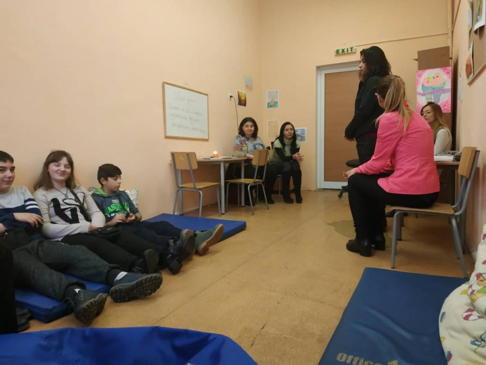 Антистрес стаята беше открита с ролева игра, в която ученици влязоха в ролята на учители, а учители бяха техни ученици и рисуваха на фона на релаксираща музика на тема „приятелството”. Заедно с тях играха и рисуваха секретарят на МКБППМН Дияна Господинова и училищният директор Милена Орешкова.