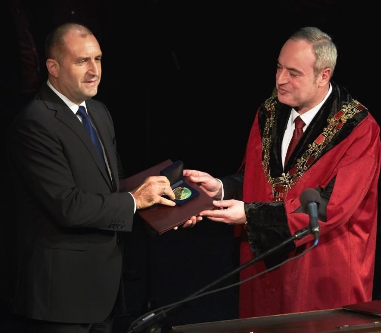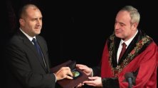 Ректорът на Софийския университет проф. Анастас Герджиков връчи на президента Румен Радев плакет, посветен на 130-годишнината на висшето училище.