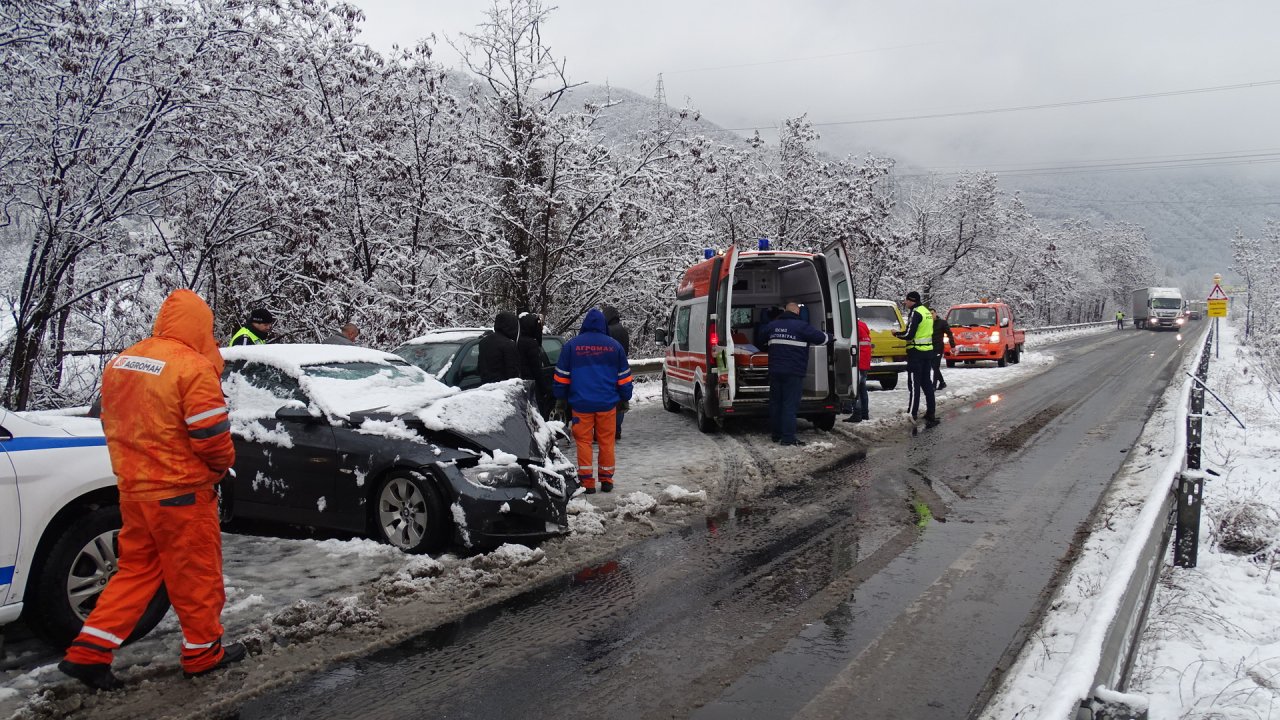Причините за пътния инцидент е обилния снеговалеж, започнал към 9 часа.