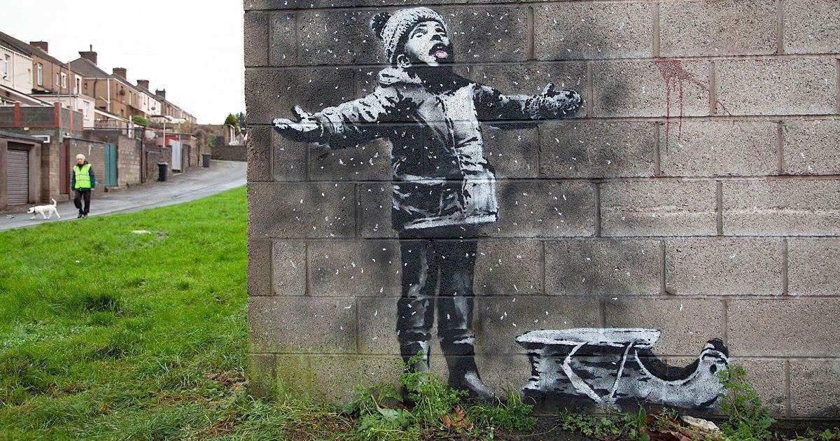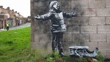 Анонимният художник Банкси се появи с нова изява - този път на стената на гараж в уелския индустриален град Порт Толбът.