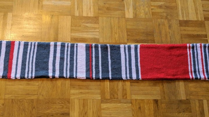 Шалът е изплетен от майката на Сара през 2018 г. Той е дълъг около 1,5 м. Използваната прежда е смес вълна и синтетика.