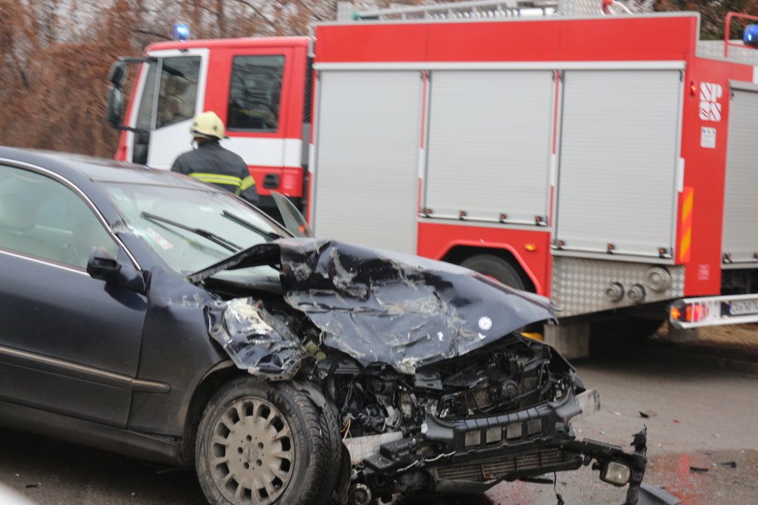 Инцидентът е станал малко след 9.30 часа между два автомобила – "Мерцедес" и "Рено". Двете коли са със сериозни материални щети. На място има екипи на пожарната и на Спешна помощ.
