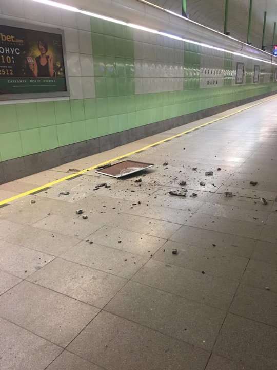 Облицовка от тавана на метростанция „Западен парк” падна на перона, съобщават потребители на социални мрежи. Изпълнителният директор на „Метрополитен” Стоян Братоев коментира за bTV, че са паднали две парчета с размери 60/60. Няма пострадали хора.