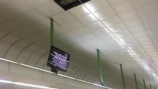 Потребител в социалните мрежи качи видео, за което се твърди, че е от вчера вечерта. На него се виждат опитите на двама работници да закрепят конструкцията, която днес се сгромоляса там, където обикновено хората чакат своя влак.