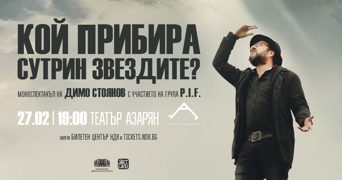 Билети за спектакъла „Кой прибира сутрин звездите?“ се продават на касата на Билетен център НДК и онлайн на tickets.ndk.bg