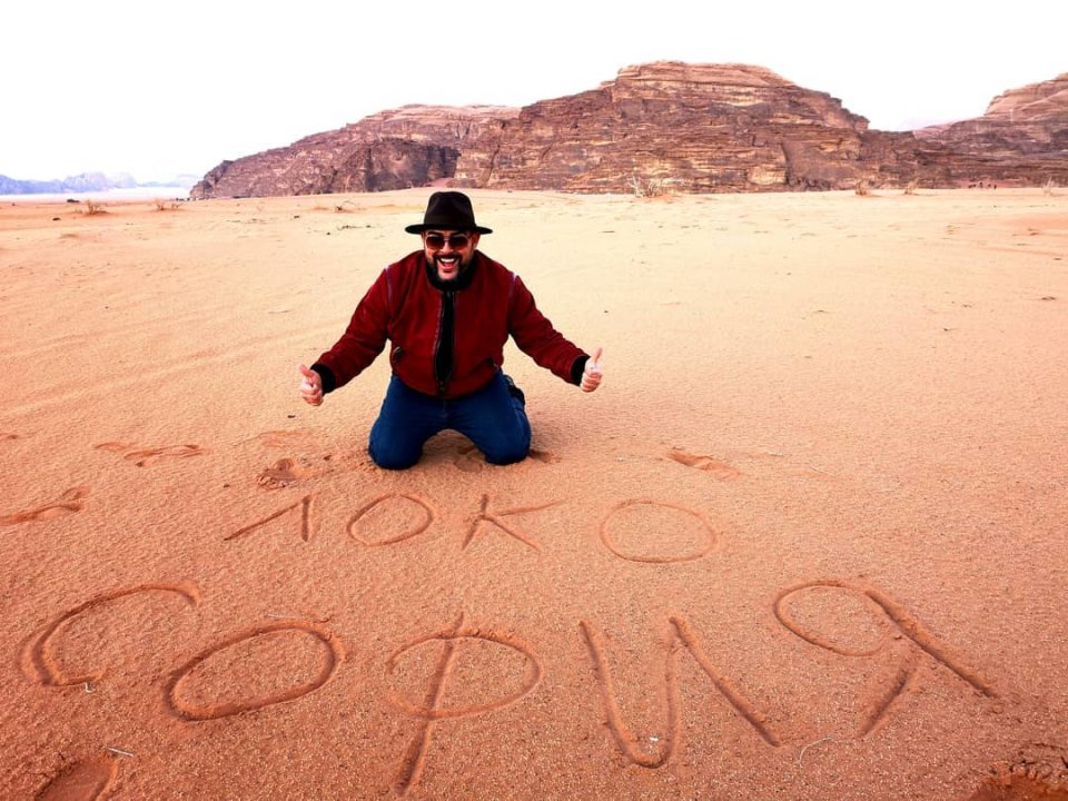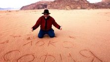 Рапърът Иван Динев – Устата заведе семейството си на екскурзия в Йордания. Там той успя шеговито да представи българщината, като изписа в пустинята „Локо София“.