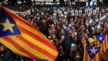 Демонстрантите размахваха сини, червени и жълти каталонски сепаратистки флагове и носеха знамена, на които пишеше „Свобода за политическите затворници“.