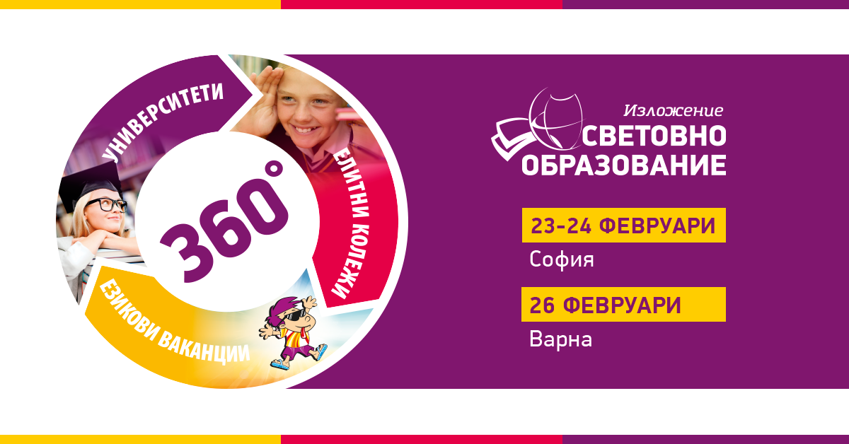 Представители на повече от 70 образователни институции пристигат в София за среща с ученици, студенти и кандидат-студенти в рамките на изложение "Световно образование". Форумът ще се състои на 23 и 24 февруари (събота и неделя) в зала 3 на Националния дворец на културата от 10.00 до 17.00 часа. На 26 февруари пък ще отвори врати във Варна.