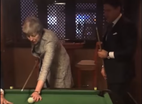 Всеки от премиерите нанесъл по един удар в залата за билярд в хотела, в който били отседнали участниците във форума на върха. После Мей и Конте се оттеглили в стаята за двустранни разговори.