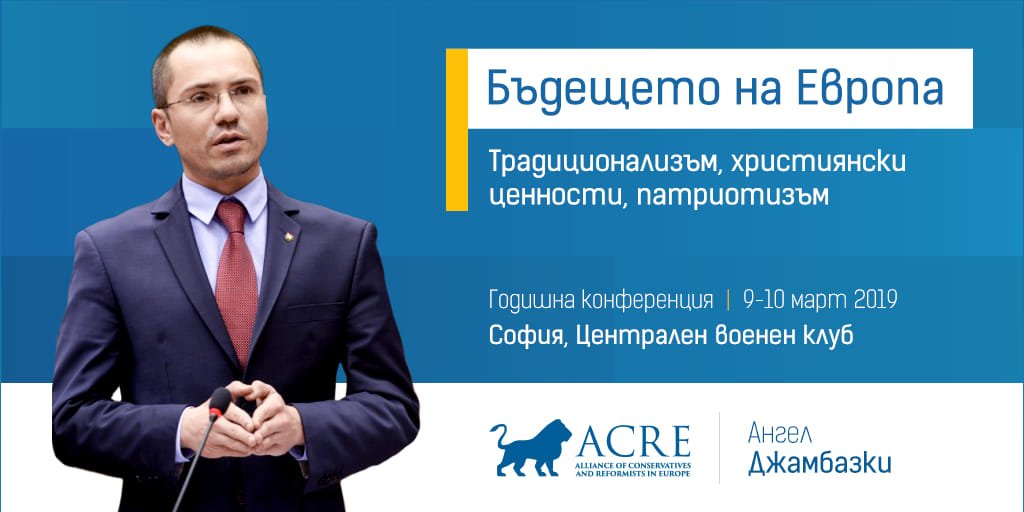 На 9 март (събота) от 14:30 часа в Централния военен клуб ще се проведе конференция, организирана от Алианса на консерваторите и реформистите в Европа на тема: Бъдещето на Европа: Традиционализъм, християнски ценности, патриотизъм. Домакин на събитието е евродепутатът и заместник-председател на ВМРО Ангел Джамбазки.