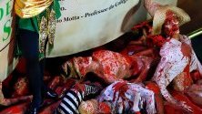 По време на своето зрелищно представяне танцьорите от "Мангейра" отдадоха почит на чернокожите и индиански герои, които не са включени в бразилските учебници. Школата направи своя трактовка на историята на страната, от нейното откриване, през извоюваната независимост до отмяната на робството. Школата дори си позволи да "коригира" националния флаг, като замени със своите маркови розови и зелени краски традиционните цветове на знамето. Вижте снимки в нашата галерия.