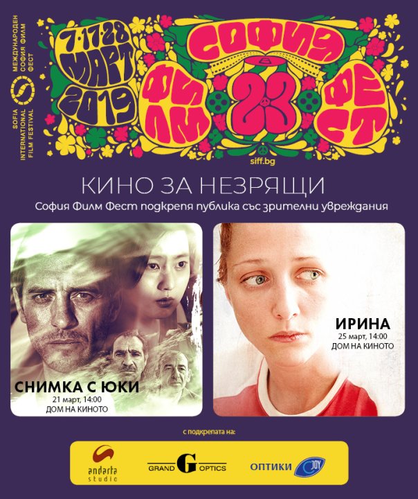 През тази година София Филм Фест продължава своята мисия да привлича незрящата публика в кинозалите, като изпълнява нейното желание да адаптира и показва изцяло български филми. В програмата „Кино за незрящи“ са включени две премиерни родни заглавия, които са пригодени за свободно възприемане от хората с нарушено зрение.
